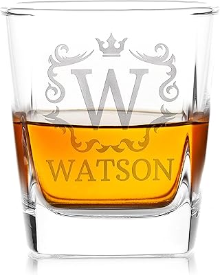 Customization Mill Single, Monogrammed Whiskey Rocks Glasses wName & Initial - Whiskey Gifts for Men - 9 Designs - Personalized Bourbon Whiskey Glasses