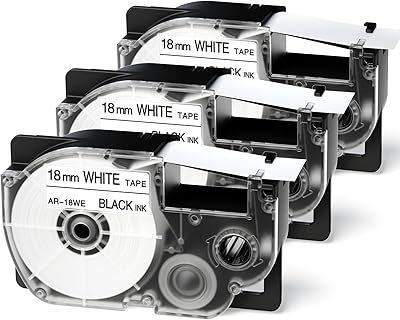 XR-18WE Replace for Casio Label Maker Tape 18mm 34 XR18WE XR-18WE2S Tape Cassette Comaptible Casio EZ Label Printer KL-750 KL-780 KL-7000 KL-7200 KL-120 KL-820, 3-Pack Black on White